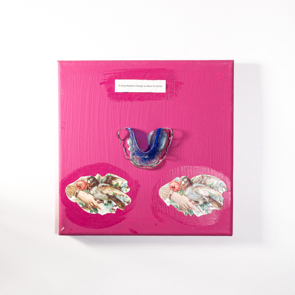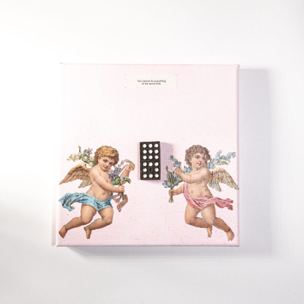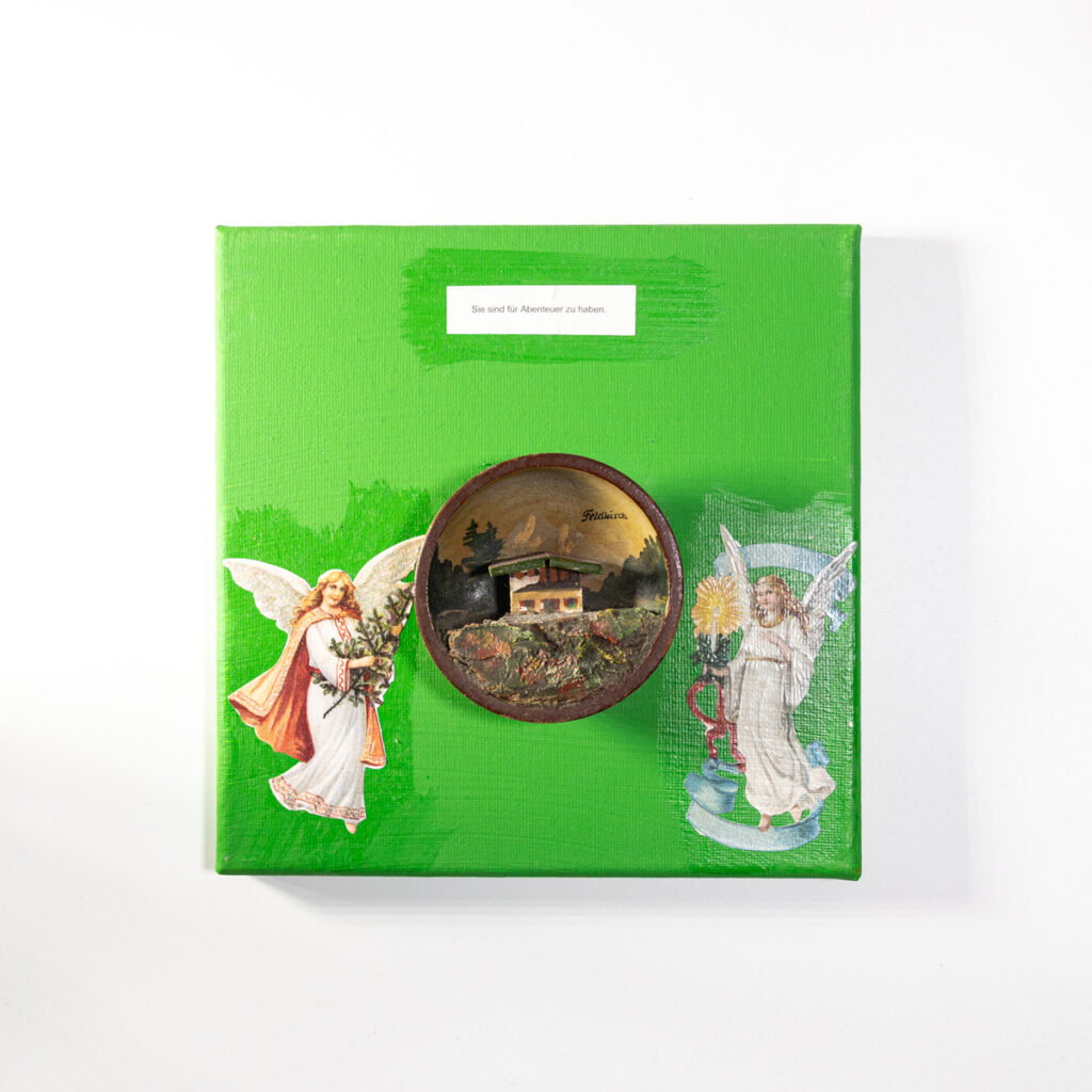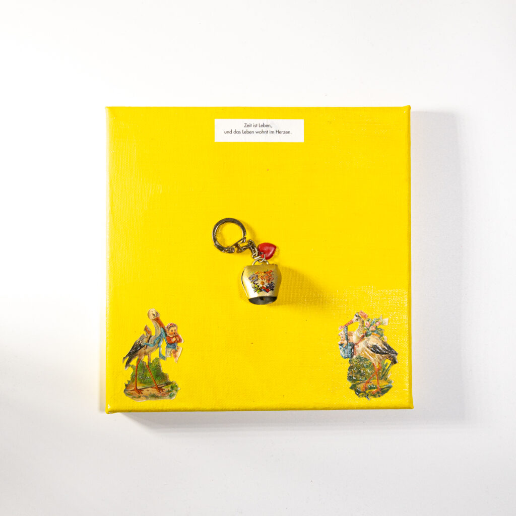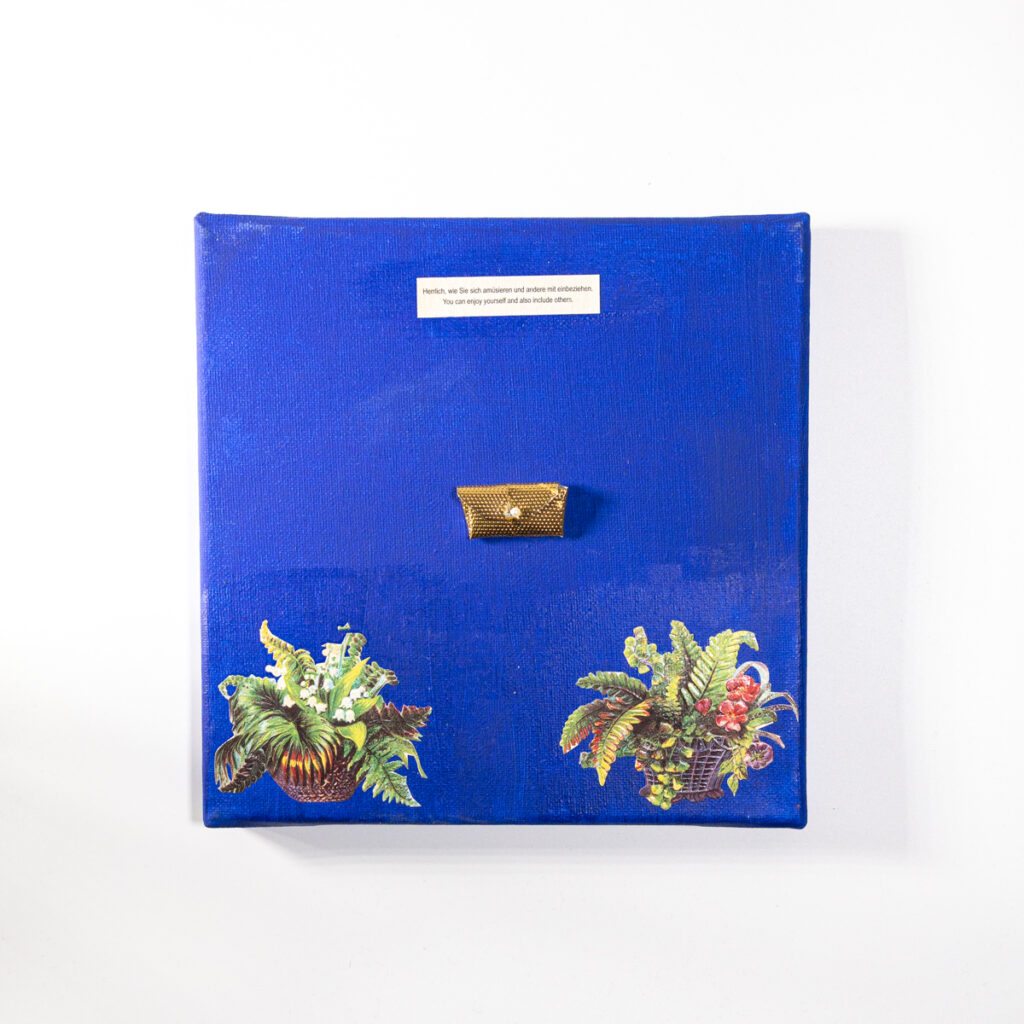 Im Laufe von vier Jahren hat die Bochumer Künstlerin Miriam Michel einhundert Quadrate angefertigt. Jedes besteht aus einem Fundstück in der Mitte, Glanzbildchen in den Ecken und einer Weisheit aus dem Glückskeks. Die Stücke sind humorvolle, poetische Mini-Geschichten in Form von Collagen.